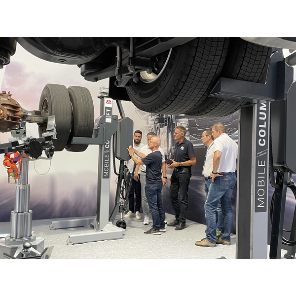 The next highlights were the axle and transmission jacks, the latest generation of pit jacks with synchronised cylinder and Venturi nozzle, which guarantee safe and precise work, and the LMS joint and axle play testers in the heavy-duty range. For this product with up to 20 t axle load, the current EU directive 2014/45/EU has already been implemented.