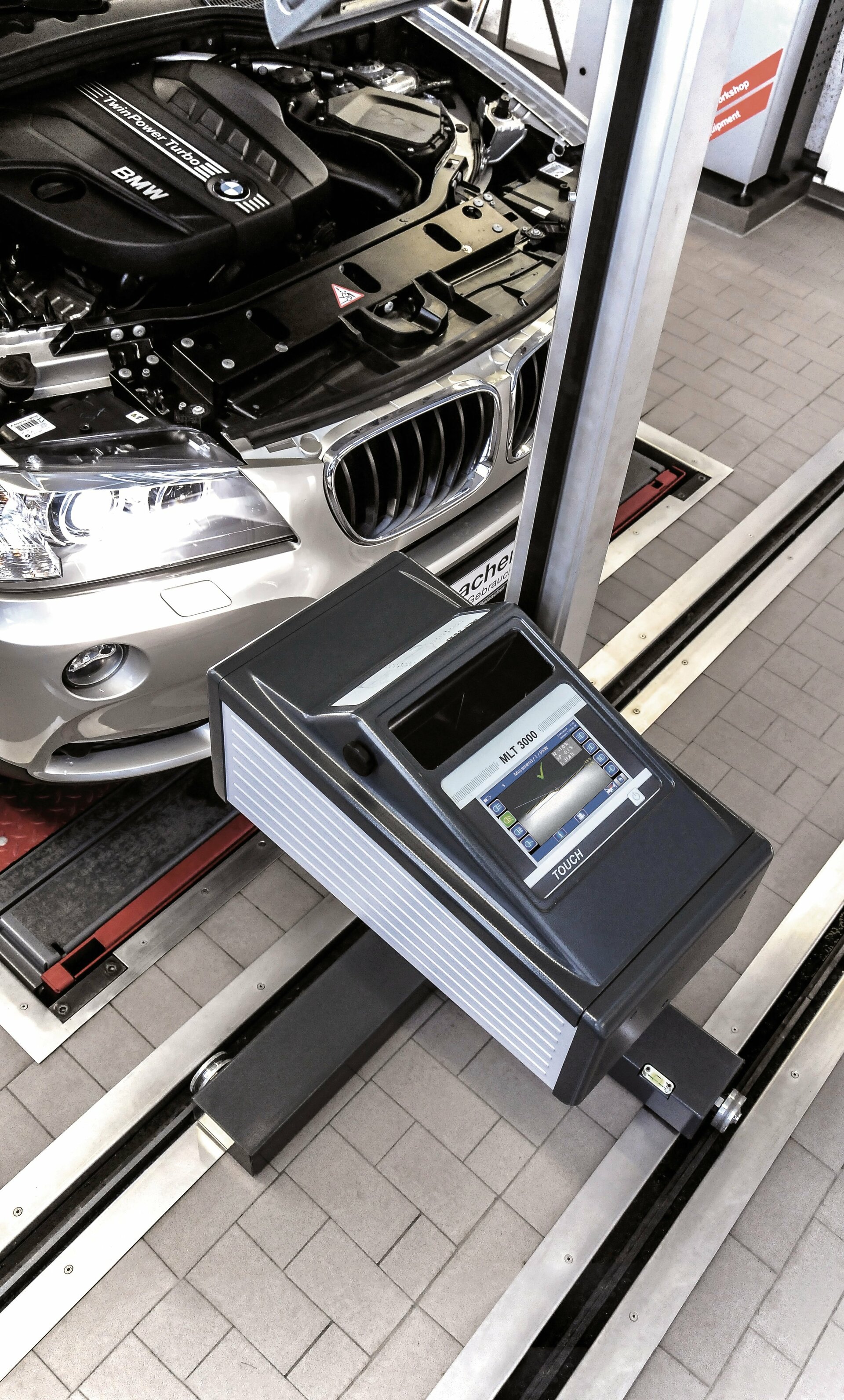 Aufrüstungen können nämlich durchaus eine gute Lösung sein, denn mithilfe der Nivellierplatten MLP 2000 von MAHA lassen sich beispielsweise Bodenunebenheiten problemlos und ohne kostspielige und zeitintensive Baumaßnahmen ausgleichen. Die bewährten MAHA-Schienensysteme für Geräte der MLT-Series ermöglichen ein schnelles und komfortables Ausrichten des Messgerätes zum Fahrzeug. Daneben bietet die in das MAHA MLT 3000 integrierte Selbstnivellierungsfunktion den Vorteil, dass selbst geringste Bodenunebenheiten im Bereich der SEP-Aufstellfläche automatisch ausgeglichen werden.