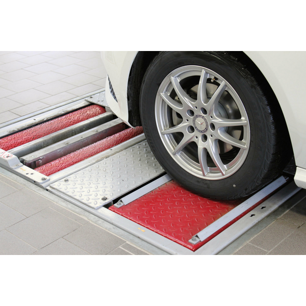 A common cause for increased tyre wear is an incorrectly set tyre track. Tyres that are not precisely aligned to the direction of travel cause a typical one-sided "erasure wear" that can be avoided by a correct setting. The exact suspension settings, for example, can be tested with the slip-slide tester MINC series from MAHA. When driving into the workshop, information about the suspension setting can be quickly determined by travelling over it.